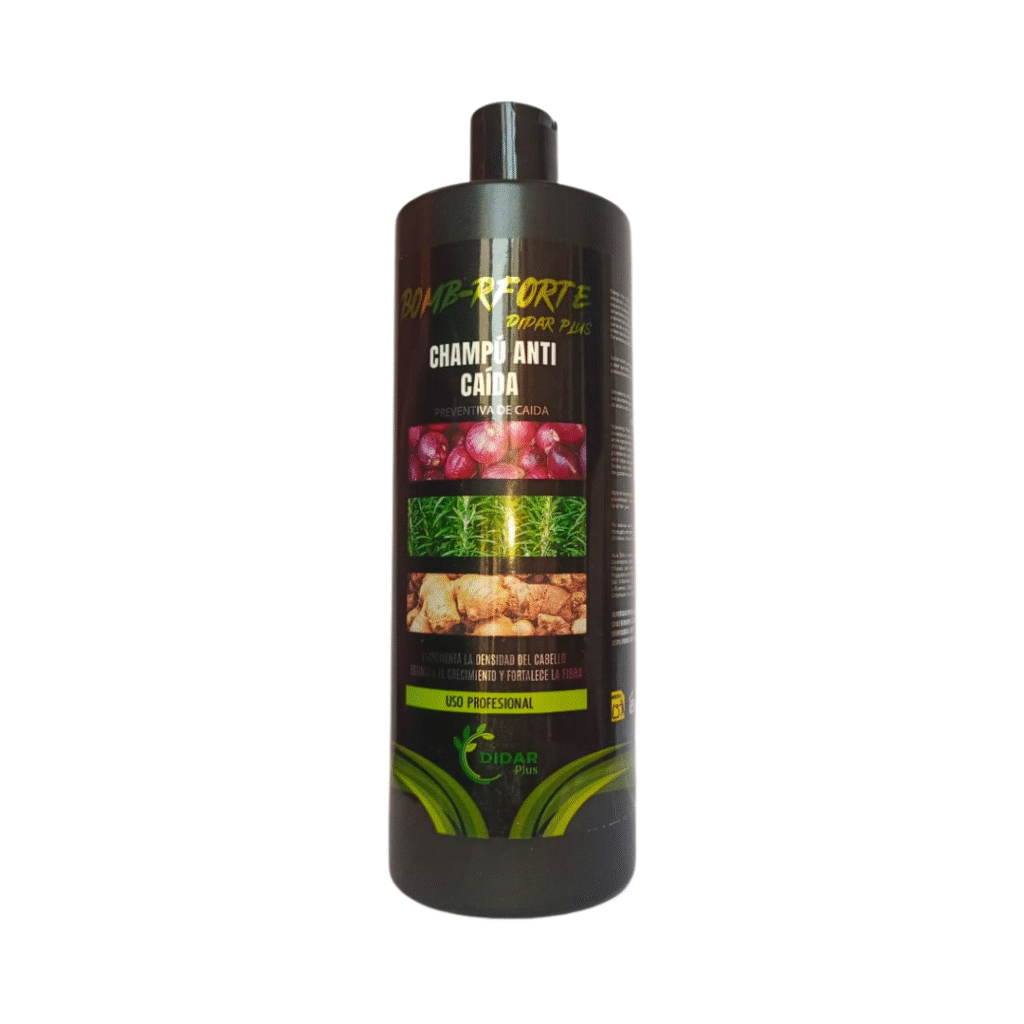 El Champú Anticaída Didar Plus Bombar Forte está formulado con extractos naturales de jengibre, cebolla y romero, ingredientes conocidos por estimular el crecimiento capilar, fortalecer desde la raíz y prevenir la caída.